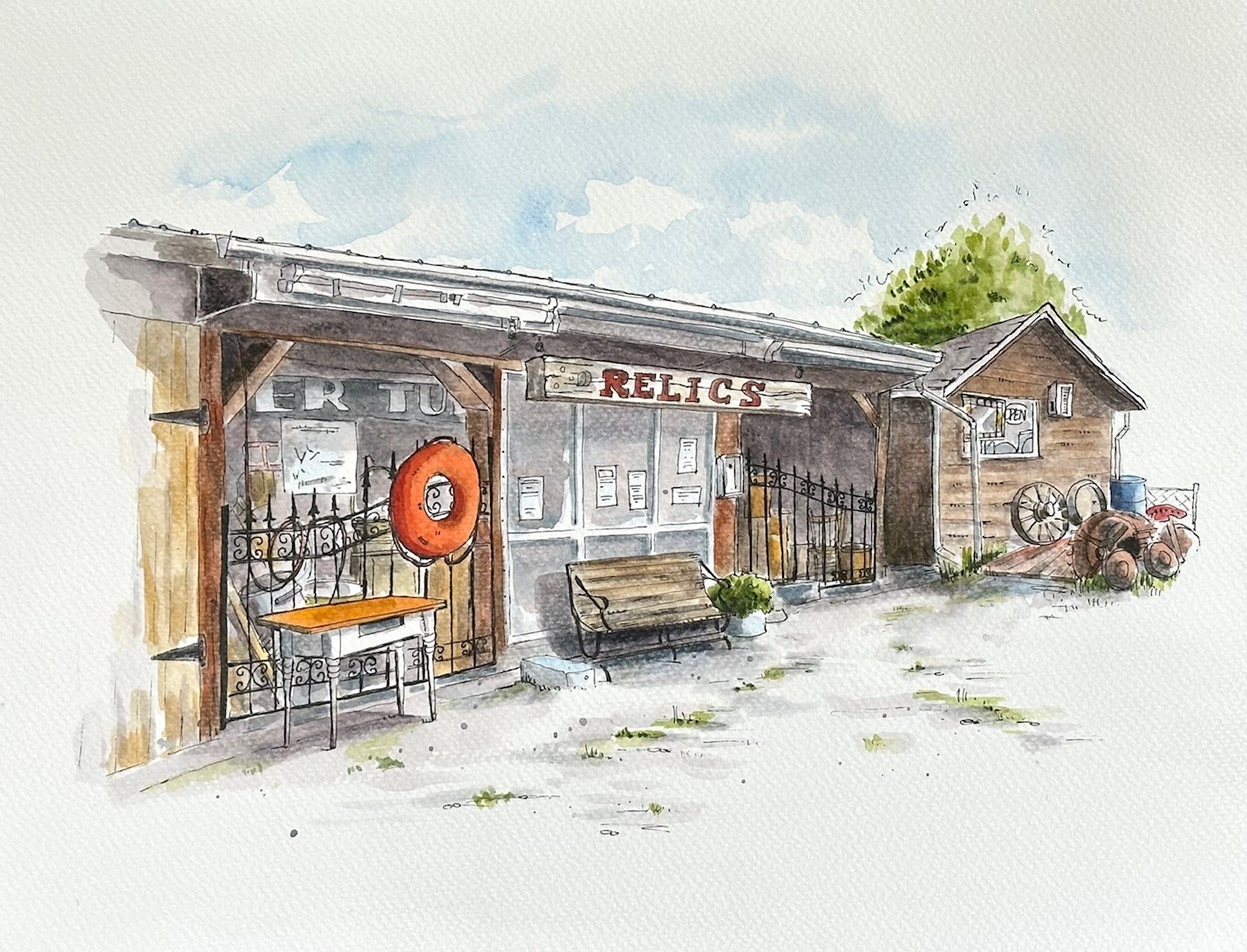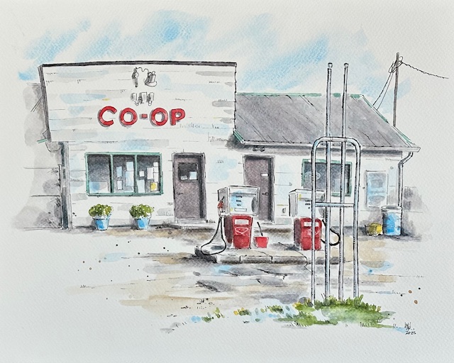 Original sketches of Relics, Manitou Beach SK & Co-Op, Imperial SK available now at the Little Manitou Art Gallery. Art notecards also available at this location. Visit the Little Manitou Art Gallery year round. (Check for seasonal hours).