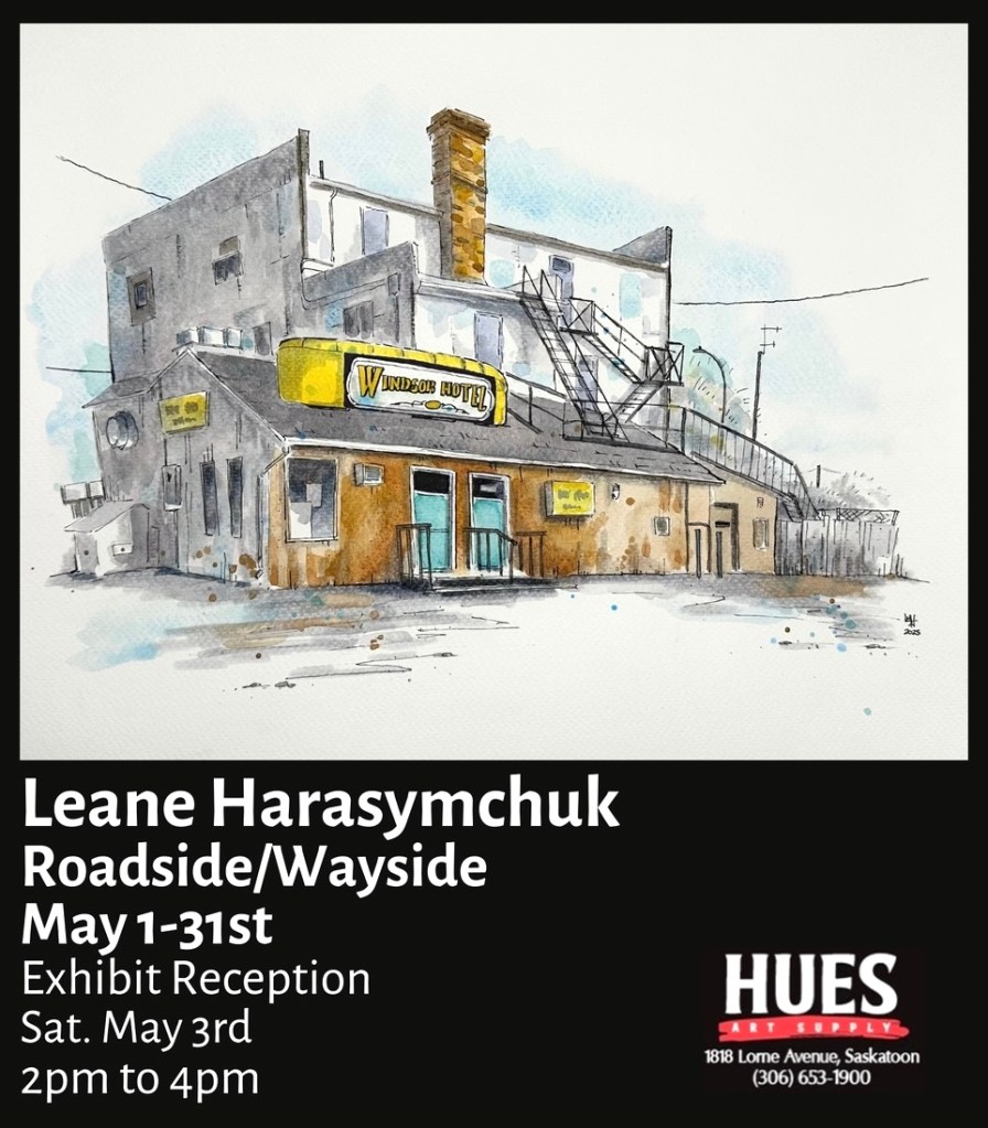 The Windsor Hotel, 2025 now up for auction at the Humboldt & District Gallery. This annual fundraiser supports local arts & cultural programming. Find more info here or place bids on The Windsor Hotel sketch here.