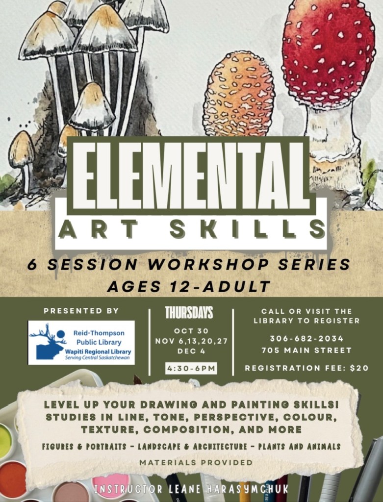 Workshop in art fundamentals in progress! Contact the Humboldt Reid-Thompson Library for information on upcoming sessions for 2026: (306) 682-2034