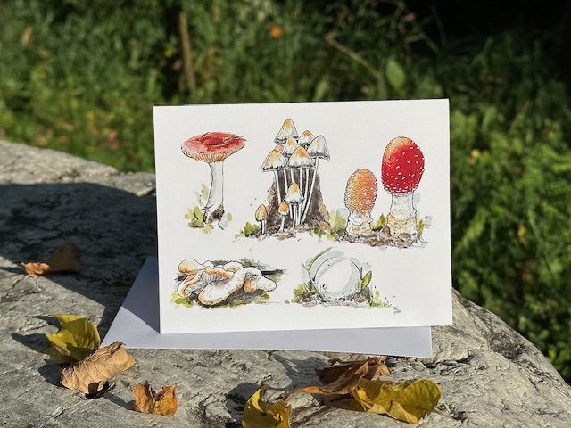Chickadees and mushrooms! Find them along with my original notecard designs at The Humboldt Market and The Humboldt and District Gallery, both locations on Main Street, Humboldt SK