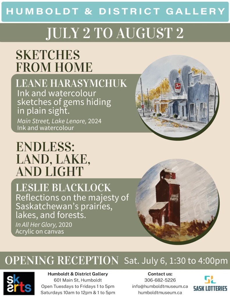 For anyone still wanting to catch the exhibit, it runs until August 2nd 2024 at the Humboldt Gallery, 601 Main Street, Humboldt, SK.