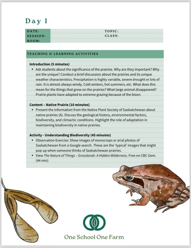 Activities with One School One Farm – Last week I attended a planting day with OSOF, to do some field sketching while grade 2 students and land partners planted a shelterbelt. OSOF now has lesson plans available on their website, for anyone interested in prairie ecology. These are free to download and feature my illustrations of local plant & animal species.